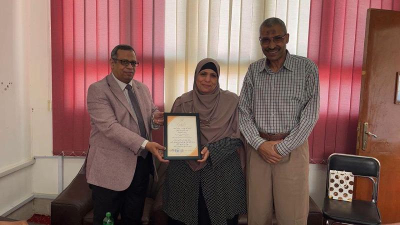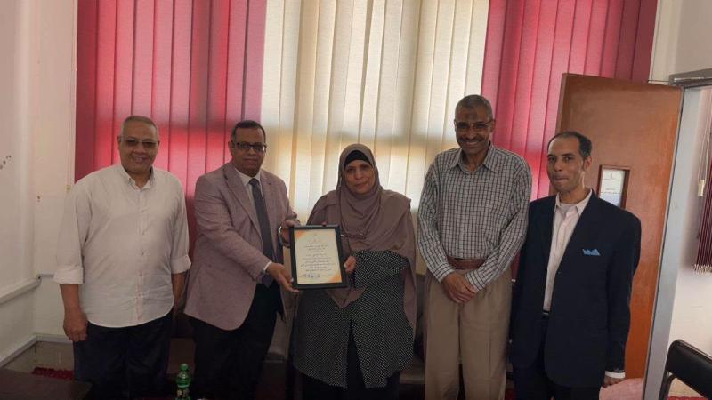 وقد اكد عميد الكلية اثناء التكريم أن السيدة سامية من النماذج التي يحتذي بها في الالتزام والانضباط والدقة في العمل والإيجابية والتفاني الذي يشهد عليه بنفسه منذ عمله كمدير للمركز عام ٢٠١٩ حتي ٢٠٢١، متمنيا لسيادتها التوفيق والسداد في المرحلة الجديدة من حياتها.