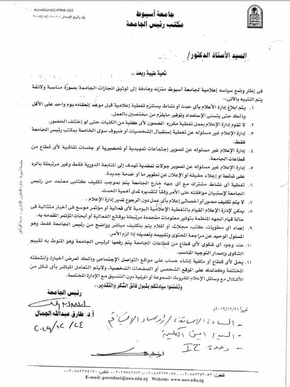 1- عرض على المجلس موافقة مجلس قسم الهندسة المدنية على الخطاب الوارد من السيد أ.د./ نائب رئيس الجامعة لشئون التعليم والطلاب بشأن تفعيل بروتوكول التعاون بين جامعة أسيوط – مصر وجامعة الزرقاء - الأردن.
