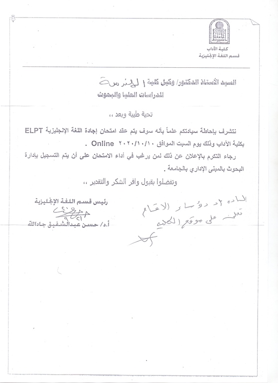 الإنتباه إالى انه تقرر أن تكون بداية الإمتحانات يوم الأحد 8/11/2020م وعلى جميع