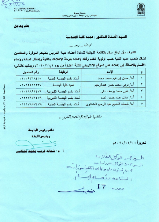 القائمة النهائية للسادة أعضاء هيئة التدريس المتقدمين لشغل وظيفة عميد Read more about القائمة النهائية للسادة أعضاء هيئة التدريس المتقدمين لشغل وظيفة عميد القائمة النهائية للسادة أعضاء هيئة التدريس المتقدمين لشغل وظيفة عميد 3 نوفمبر 2020