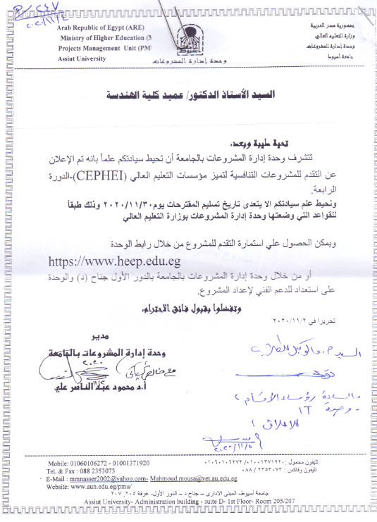 التقدم للمشروعات التنافسية لتميز مؤسسات التعليم العالى Read more about التقدم للمشروعات التنافسية لتميز مؤسسات التعليم العالى التقدم للمشروعات التنافسية لتميز مؤسسات التعليم العالى 9 نوفمبر 2020