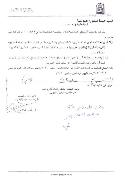 قرار مجلس الجامعة الخاص بطلاب الدراسات العليا Read more about قرار مجلس الجامعة الخاص بطلاب الدراسات العليا قرار مجلس الجامعة الخاص بطلاب الدراسات العليا 10 نوفمبر 2020