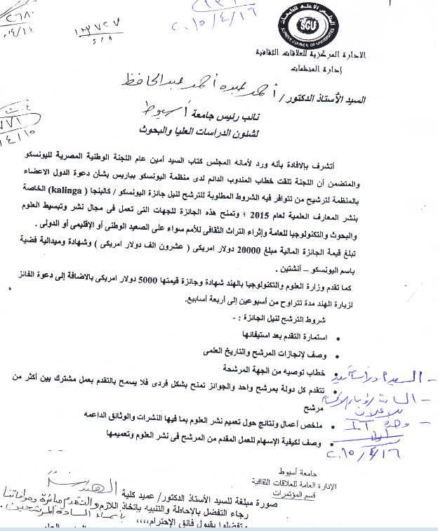 Jointly funded by the Kalinga Foundation Trust, the Orissa Government of India and the Indian Government, the UNESCO Kalinga Prize for the Popularization is an international distinction that rewards a person who has had a distinguished career as a writer, editor, lecturer, radio/television programme director or film producer, which has enabled him/her to help to interpret science, research and technology to the public.Nominations should be submitted to Director General by the governments of Member States, in consultation with their National Commissions, and by non-governmental organizations maintaining official partnerships with UNESCO. Each Member State and non-governmental organization may designate one candidate. Nominations for the prize should reach UNESCO by 29 May 2015.