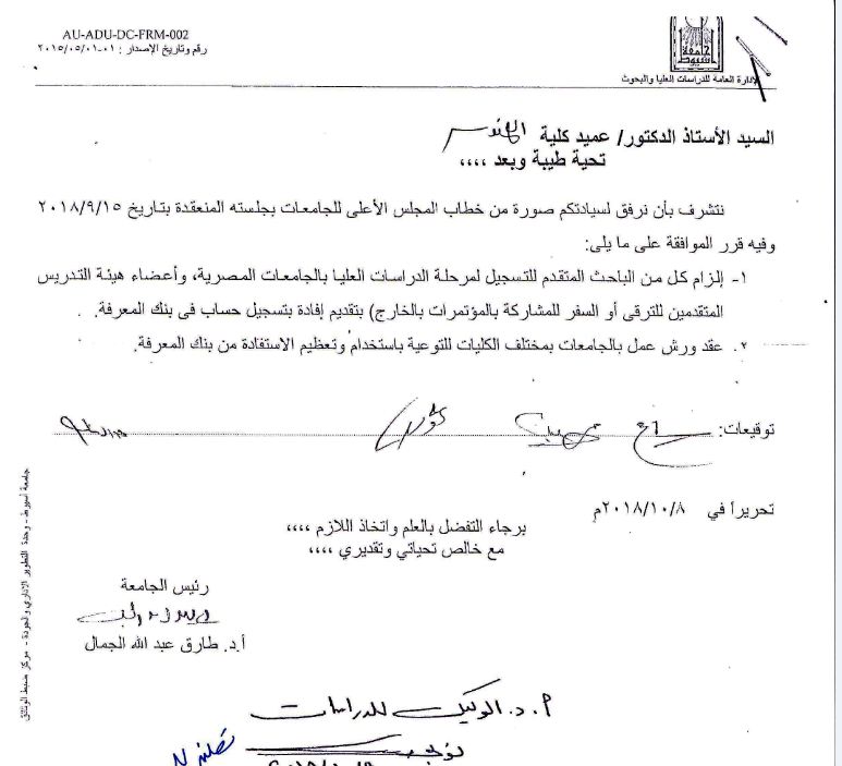 Important for advanced researchers to graduate studies in Egyptian universities and faculty members advanced for promotion or travel 22 October 2018 Important for advanced researchers to graduate studies in Egyptian universities and faculty members advanced for promotion or travel