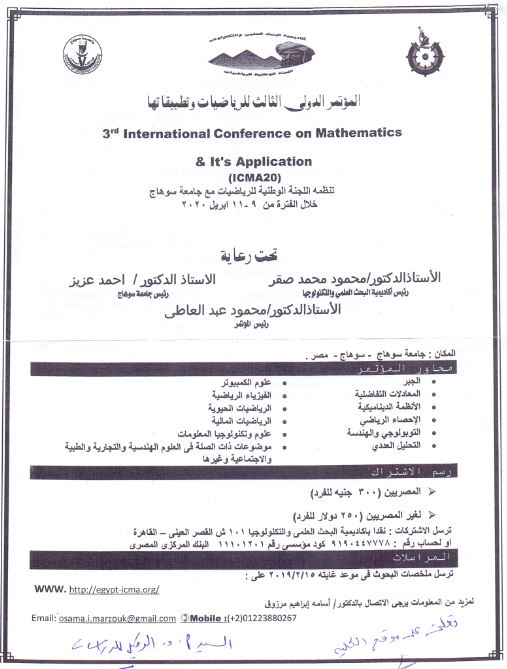 3rd International Conference on Mathematics and Its Applications 29 January 2020 3rd International Conference on Mathematics and Its Applications