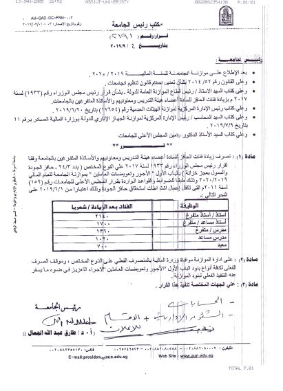 Adoption of the dismissal of the incentive of the faculty members 5 September 2019 Adoption of the dismissal of the incentive of the faculty members