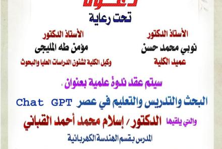 Chat GPT ندوة علمية بعنوان البحث والتدريس والتعليم فى عصر