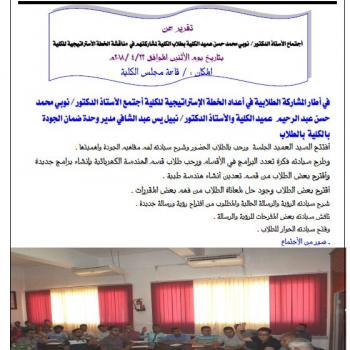 Report on the meeting of Professor Dr. Noubi Mohamed Hassan, dean of the college students for their participation in the discussion of the College strategic plan
