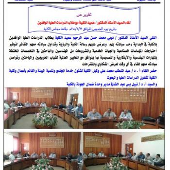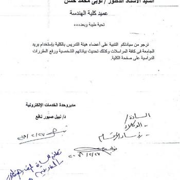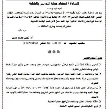 1- The Council recommended to the Council of the Civil Engineering Department to appoint Eng. Mahmoud Mohamed Mostafa Ali as the Assistant Lecturer in the position of Assistant Lecturer, as he is…