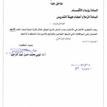 Dr. Nubi Mohamed Hassan, Dean of the Faculty of Engineering, appealed to the members of the teaching staff for their generosity and taking them back abroad during the half-year vacation period.