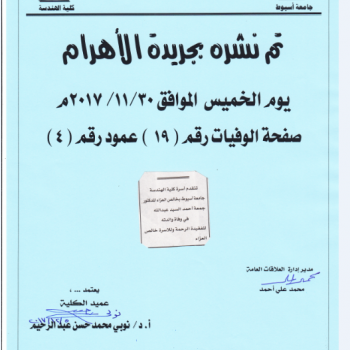 Published the condolences of the mother of Dr. Juma Ahmed Al-Sayed in Al-Ahram newspaper