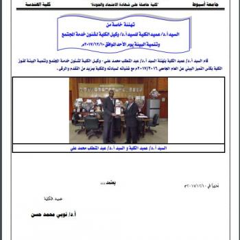 Special congratulations from the Dean of the College to the Vice Dean for Community Services and Environmental to receive the Environmental Excellence Award