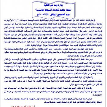 Report on the visit of a delegation from the faculty to the Assiut power plant on Thursday, 30-3-2017