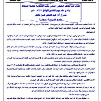 Report on the second scientific Conference of the Faculty of Engineering, Assiut University, held on Monday 3/4/2017