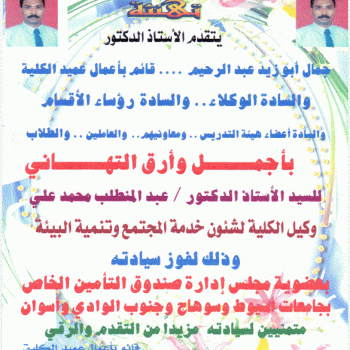 Congratulation to Prof. Dr. Abdel Muntaleb Mohamed Ali for winning the chairmanship of the Board of Directors of the Insurance Fund for the Universities of Assiut, Sohag, South Valley and Aswan.
