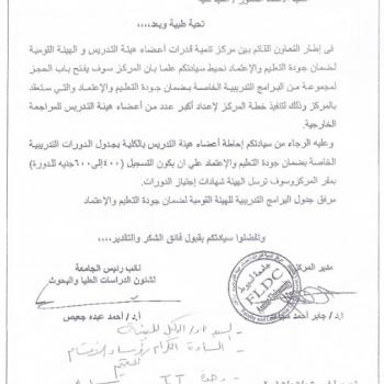 The Faculty and Leadership Development Center is offering training programs about quality assurance and accreditation project for fcaulty members. The registeration fees will be between (400-600 L.E…