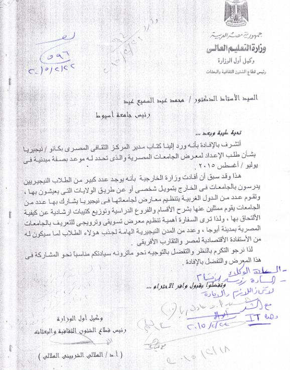 الإعداد لمعرض الجامعات المصرية يوليو -أغسطس 2015 23 فبراير 2015 قد تحدد موعد بصفة مبدئية لمعرض الجامعات المصرية يوليو/ أغسطس 2015