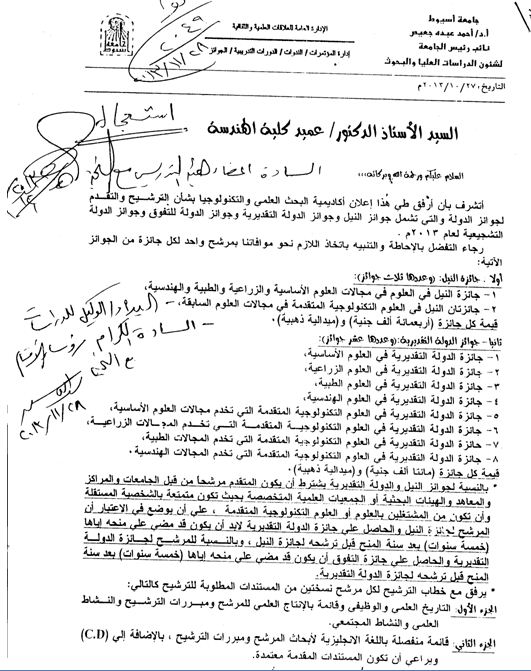 اعلان اكاديمية البحث العلمى والتكنولوجيا بشأن الترشيح والتقدم لجوائز الدولة 2 ديسمبر 2013 تعلن اكاديمية البحث العلمى والتكنولوجيا بشأن الترشيح والتقدم لجوائز الدولة للتفوق وجوائز الدولة والتقديرية والتشجيعية لعام 2013