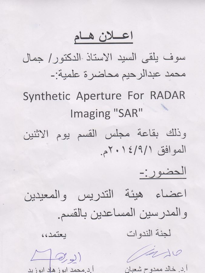 اعلان هام خاص بندوة فى قسم الهندسة الميكانيكية 26 أغسطس 2014 اعلان هام خاص بندوة فى قسم الهندسة الميكانيكية