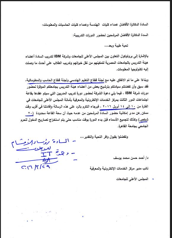 إعلان هام خاص بترشيح بعض أعضاء هيئة التدريس لحضور دورات بشركة IBM 31 مارس 2016 إعلان هام خاص بترشيح بعض أعضاء هيئة التدريس لحضور دورات بشركة IBM