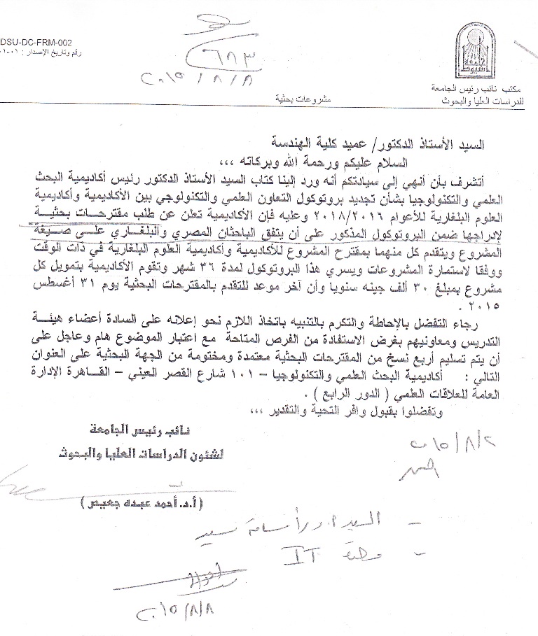 اعلان عن فرصة للتقدم بمقترحات لمشروعات بحثية 9 أغسطس 2015 اعلان عن فرصة للتقدم بمقترحات لمشروعات بحثية