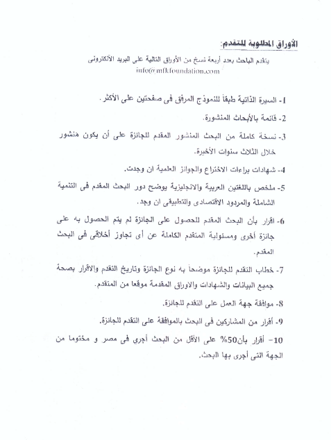 3- نسخة كاملة من البحث المنشور المقدم للجائزة على أن يكون منشور خلال الثلاث سنوات الأخيرة.