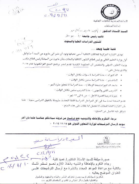 الحكومة الكندية تقدم لمصر برنامج المنح الفرانكفونية لعام 2015 12 نوفمبر 2014 الحكومة الكندية تقدم لمصر برنامج المنح الفرانكفونية لعام 2015