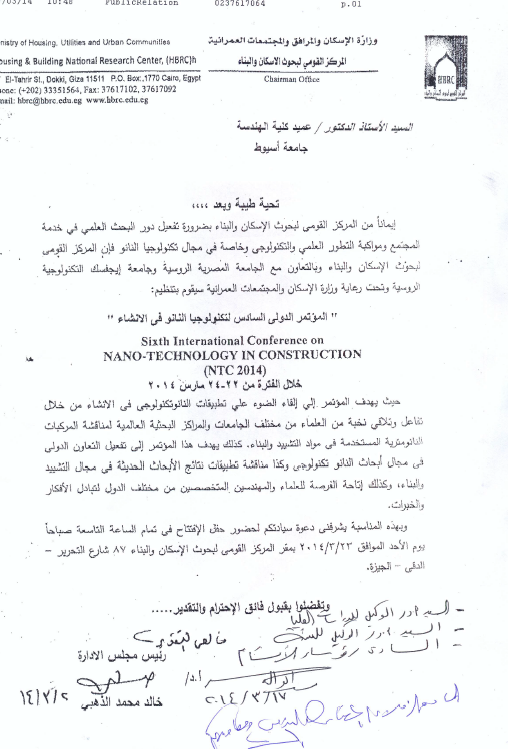 المؤتمر الدولى السادس لتكنولوجيا النانو فى الإنشاء خلال الفترة من 22-24 مارس 2014