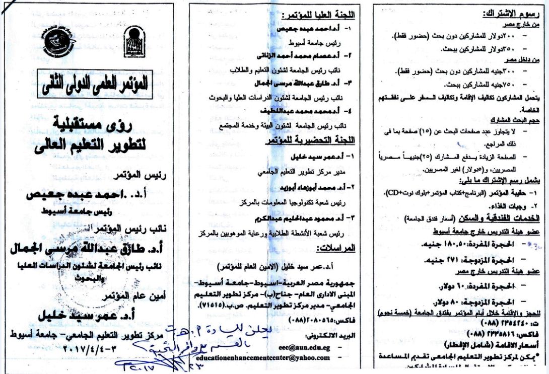 المؤتمر العلمى الثانى ( رؤى مستقبليه لتطوير التعليم) 5 فبراير 2017 المؤتمر العلمى الثانى ( رؤى مستقبليه لتطوير التعليم)