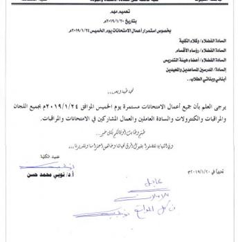 تشكيل لجان امتحانات الفصل الدراسي الأول للعام الجامعي 2018/2019م