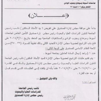 فتح باب الترشيح لعضوية مجلس الإدارة للتجديد الثلثى وذلك تطبيقاً للمواد (32’35)من لائحة النظام الأساسى للصندوق على الوجه التالى: