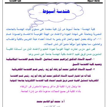 كلية الهندسة - جامعة أسيوط هي أول كلية معتمدة على مستوي كليات الهندسة بالجامعات المصرية وحاصلة على شهادة الجودة والاعتماد من الهيئة القومية للاعتماد والجودة عام٢٠١١ م، وذلك…