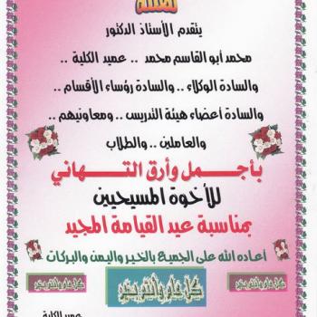 ومعاونيهم والعاملين والطلاب بالكليةبأجمل وأرق التهاني