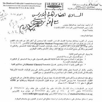 فتح باب التقدم لبرنامج منح فولبرايت للدراسات العليا للعام 2016-2015 ولذى يهدف لى تقديم فرص للدراسة / اجراء أبحاث بالولايات المتحدة الأمريكية لطلبة الماجستير والدكتوراة للمصريين وذلك…
