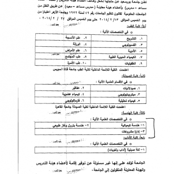 تعلن جامعة بورسعيد عن حاجتها لشغل وظائف أعضاء هيئة التدريس (استاذ- أستاذ مساعد- مدرس) وأعضاء هيئة معاونة (مدرس-مساعد- معيد عن طريق النقل من الجامعات الحكومية لقانون تنظيم الجامعات ) رقم 49 لسنة 1972…