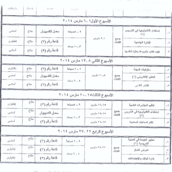 فى اطار تنفيذ البرامج التدربية لمركز تنمية قدرات السادة اعضاء هيئة التدريس والقيادات خلال مارس 2014م ونظرا للضوابط المحددة لعدد المتدربين فى كل برنامج (20 متدرب)من قبل اللجنة القومية لتنمية…