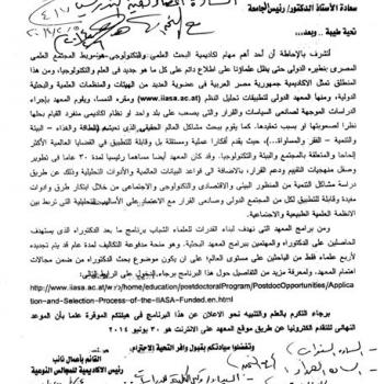 هذه المنح تستهدف الحاصلين على الدكتوراة من العلماء الشباب وهى منحة مدفوعة التكاليف لمدة عام قد يتم تجديدة لأربعة علماء فقط على مستوى العالم