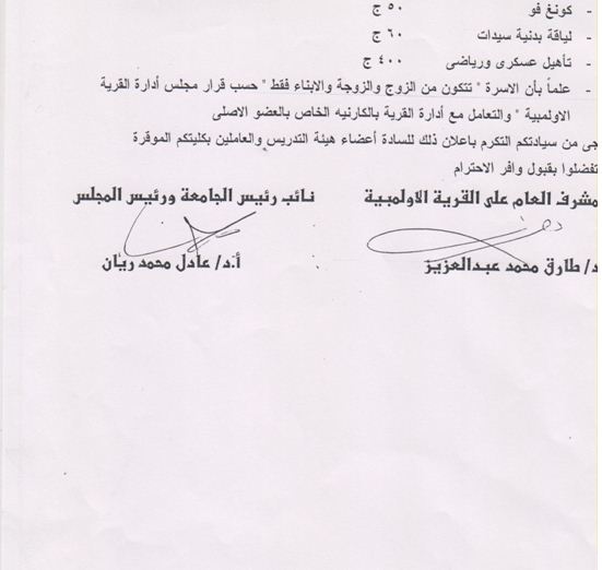 اسعار خاصة بالسادة أعضاء هيئة التدريس والعاملين وأسرهم فى القرية الأولمبية 24 يونيو 2014 بناء على رغبة السادة أعضاء هيئة التدريس والعاملين وأسرهم قرر مجلس ادارة القرية تحديد أسعار الممارسة على النحو التالى: اولأ:التراك -اشتراك شهرى 30 ج اشتراك نصف سنوى 160ج اشتراك سنوى 300 تم تحديد غرفة خلع الملابس لمرسة من أعضاء هيئة التدريس بالإستاد