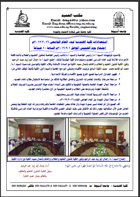 استعدات كلية الهندسة لبدء العام الجامعى 2016/2017 8 سبتمبر 2016 استعدات كلية الهندسة لبدء العام الجامعى 2016/2017