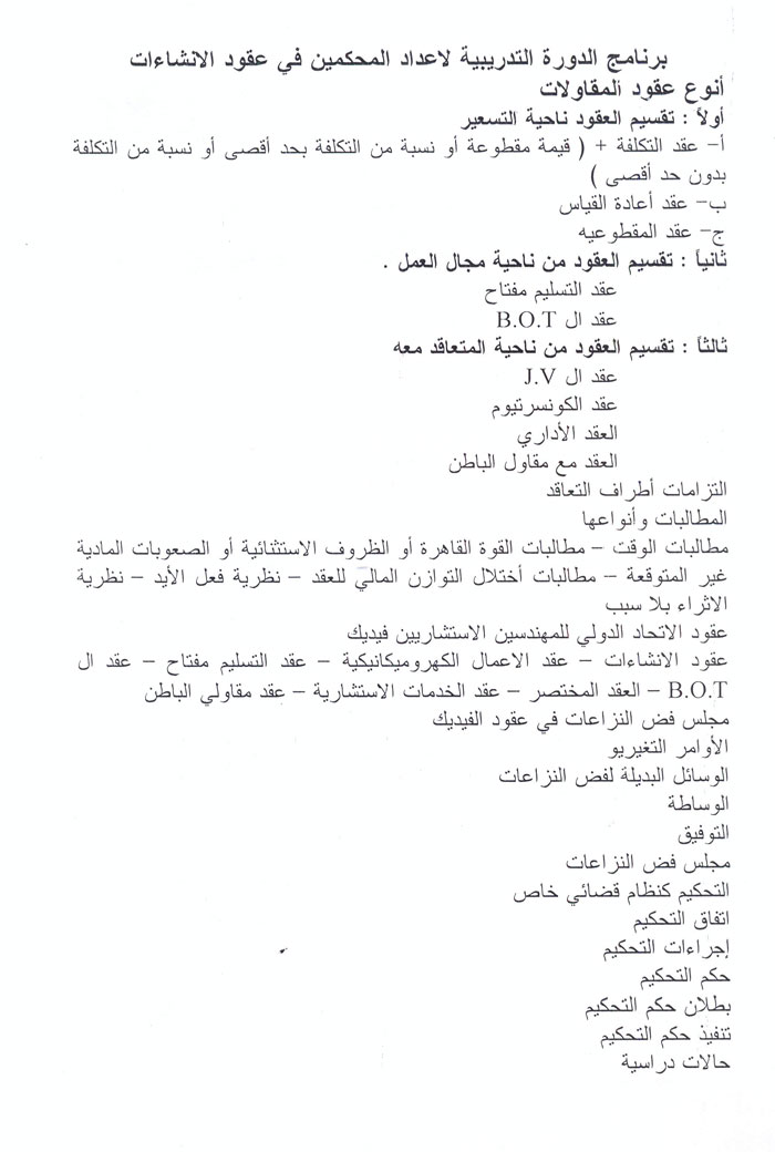 برنامج الدورة التدريبية لإعداد المحكمين فى عقود الانشاءات 26 فبراير 2013 برنامج الدورة التدريبية لإعداد المحكمين فى عقود الانشاءات