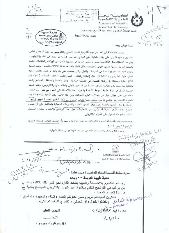 برنامج تدريبى صيفى موجه للشباب من طلبة الدكتوراة لمدة 3 شهور (يونيو واغسطس ) بمقر المعهد بالنمسا 25 ديسمبر 2014 برنامج تدريبى صيفى موجه للشباب من طلبة الدكتوراة لمدة 3 شهور (يونيو واغسطس ) بمقر المعهد بالنمسا حيث يوفر المعهد العلماء والتسهيلات المعملية