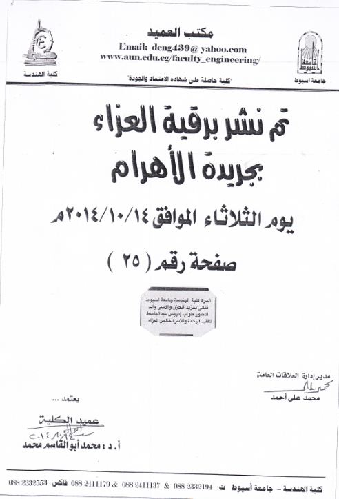 برقية عزاء/ لوالد الدكتور طواب إدريس عبدالباسط 14 أكتوبر 2014 أسرة كلية الهندسة تنعى بمزيد من الحزن والأسى والد الكتور / طواب ادريس عبدالباسط للفقيد الرحمة وللأسرة خالص خالص العزاء