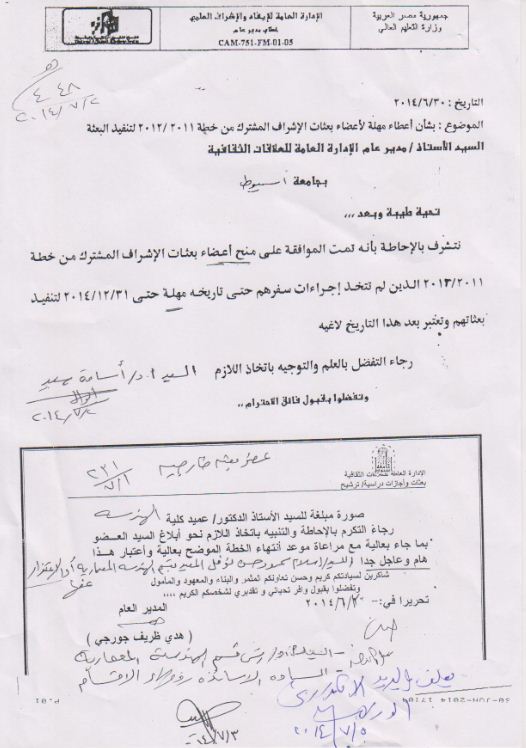 بشان اعطاء مهلة لاعضاء بعثات الاشراف المشترك من خطة 2011/2012 لتنفيذ البعثة 7 يوليو 2014 بشان اعطاء مهلة لاعضاء بعثات الاشراف المشترك من خطة 2011/2012 لتنفيذ البعثة