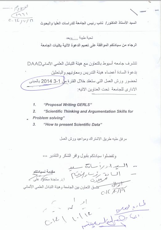 دعوة لحضور ورشة عمل مع هيئة التبادل العلمى DAAD 21 أكتوبر 2014 دعوة لحضور ورشة عمل مع هيئة التبادل العلمى DAAD