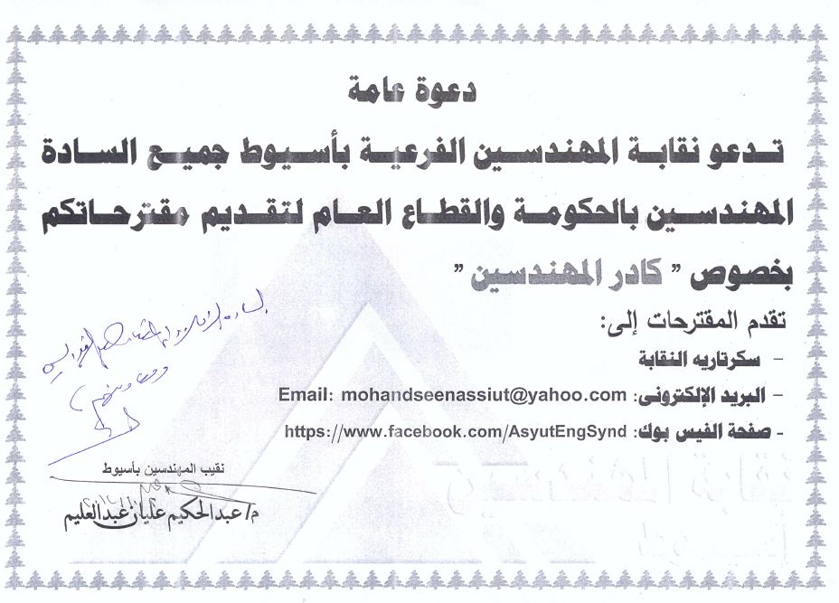 دعوة من نقابة المهندسين بخصوص كادر المهندسين 16 أكتوبر 2014 دعوة من نقابة المهندسين بخصوص كادر المهندسين