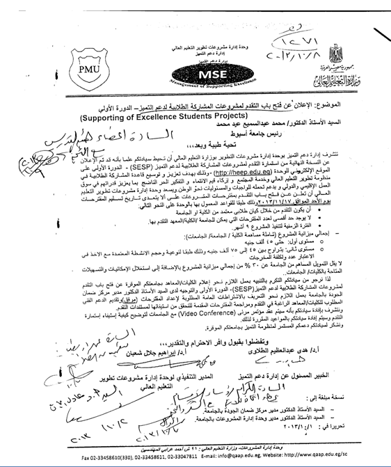 تم الإعلان عن النسخة النهائية من استمارة التقدم لمشروعات المشاركة الطلابية لدعم التميز