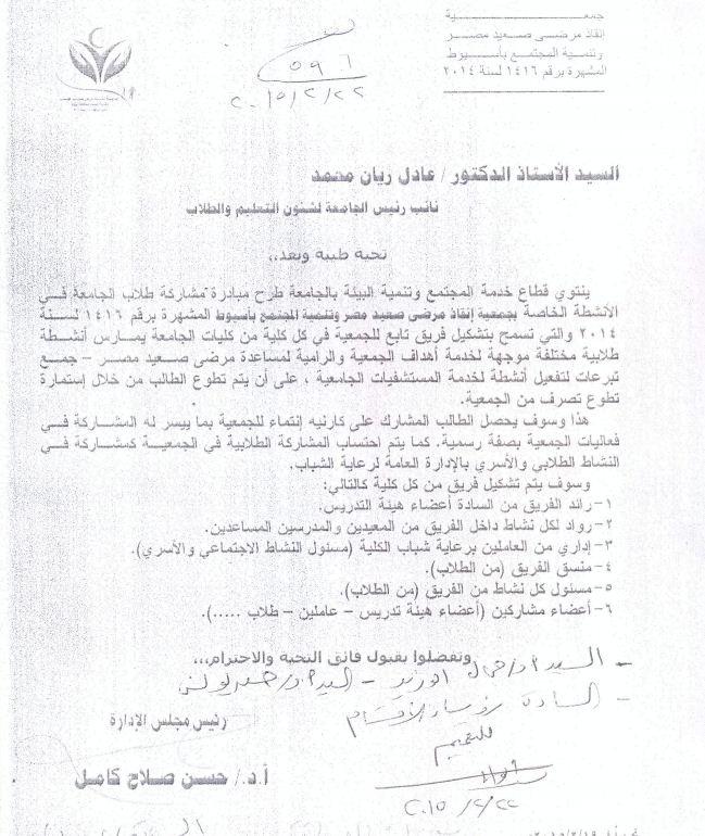 مبادرة مشاركة طلابية فى الانشطة الخاصة بجمعية إنقاذ مرضى صعيد مصر 24 فبراير 2015 مبادرة مشاركة طلابية فى الانشطة الخاصة بجمعية إنقاذ مرضى صعيد مصر