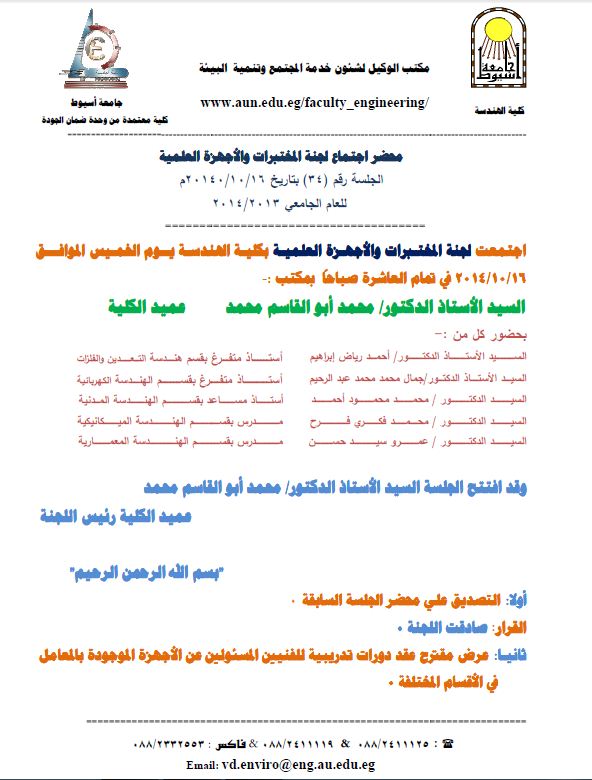 محضر اجتماع لجنة المختبرات والأجهزة العلمية 19 أكتوبر 2014 محضر اجتماع لجنة المختبرات والأجهزة العلمية