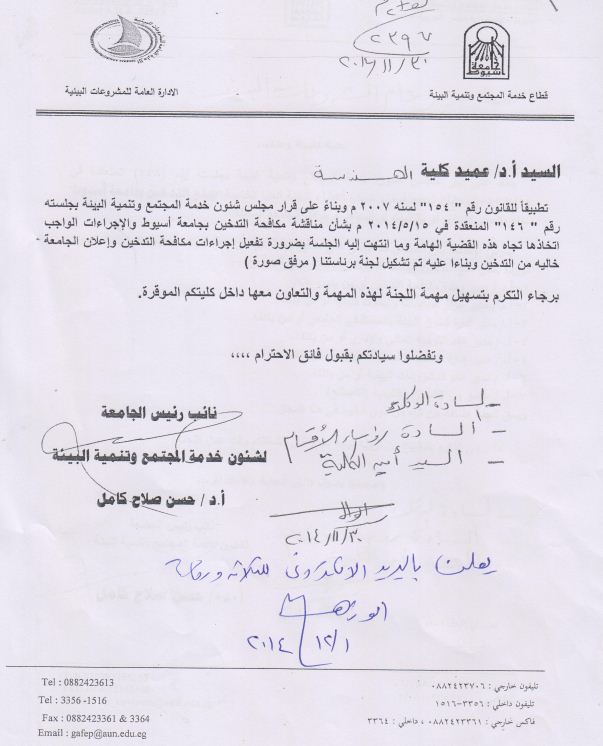 مناقشة مكافحة التدخين بجامعة اسيوط