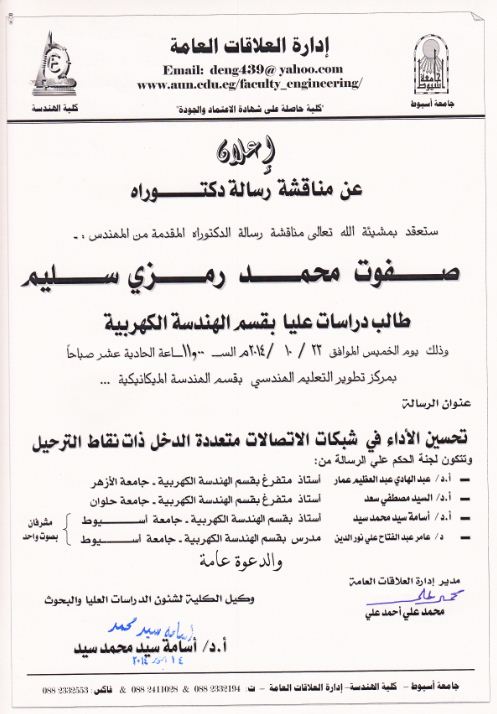 مناقشة رسالة الدكتوراة / صفوت محمد رمزى سليم 15 أكتوبر 2014 مناقشة رسالة الدكتوراة / صفوت محمد رمزى سليم